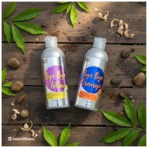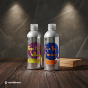 – Untuk proses, lanjutkan dengan Bye Bye Orange Conditioner . Produk ini mengandung pigmen blue yang dapat menodai tangan dan kuku sehingga disarankan untuk menggunakan sarung tangan sekali pakai.