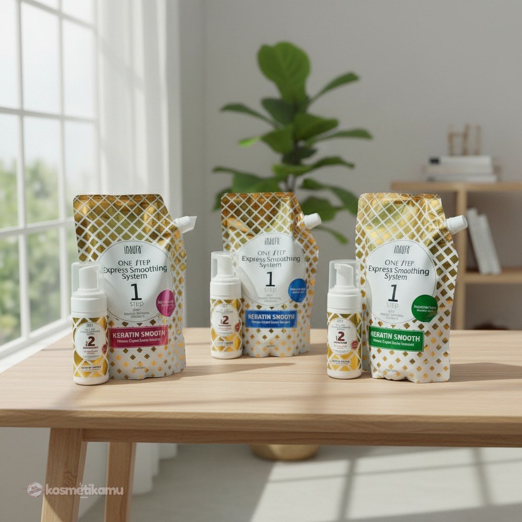 Inaura Paket One Step Express Keratin Smoothing System Step 1 Ukuran 750ml + Step 2 Foaming 100ml